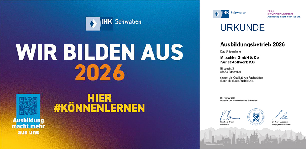 | Ihre Bewerbung | Wir bieten eine außerordentlich attraktive Position in einem renommierten, mittelständischen Unternehmen. Bitte richten Sie Ihre vollständigen Bewerbungsunterlagen an: Mitschke GmbH & Co. Kunststoffwerk KG Personalabteilung Birkenstraße 3 87653 Eggenthal oder per email an personal_at_mitschke-kunststoffwerk.de Wir sichern Ihrer Bewerbung die notwendige Diskretion zu. Informationen zum Thema Datenschutz und ihren damit verbundenen Betroffenenrechten erhalten Sie auf unserer Internetseite unter Datenschutz |